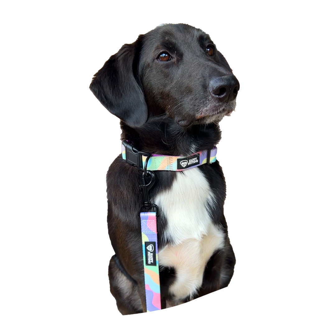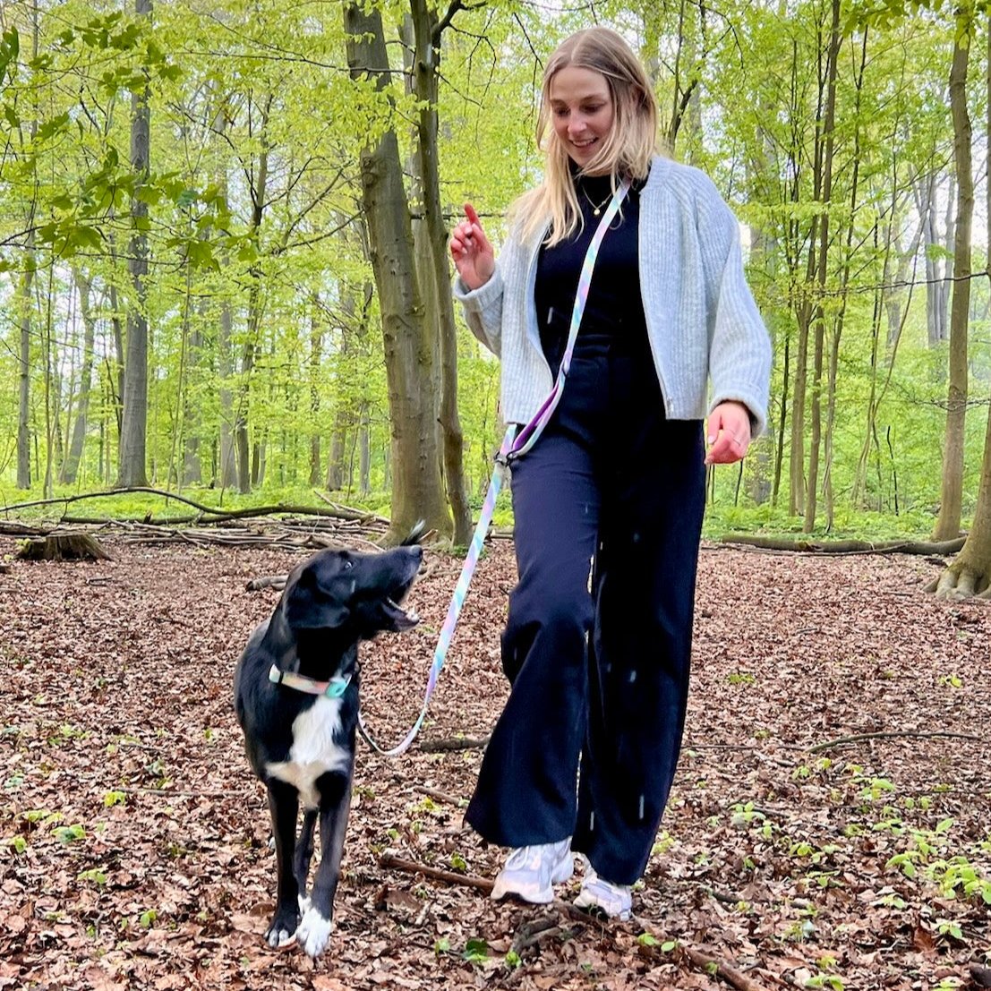 Mit unserem bunten Set aus Halsband und Leine ist nicht nur dein Vierbeiner der Hingucker auf jeder Hunderunde! 🐕